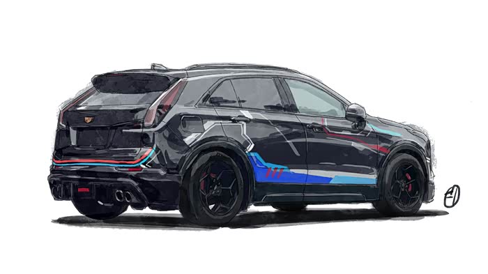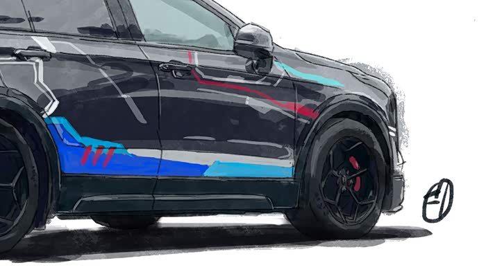 所画车型来自,@Shine 的爱车XT4,这位朋友看到我之前画的恐龙先生的黑武士XT4,特意找到我也给画一张