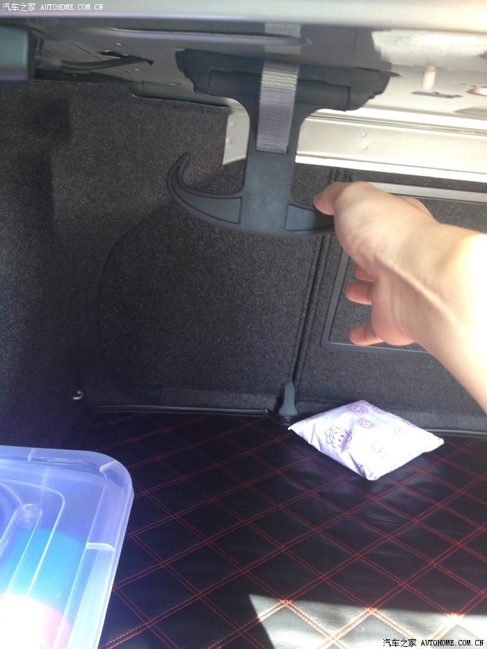 不得不说这个羊角钩不错,挺好用。比如买一些有水有油的东西,免得弄脏后备箱,就可以挂起来。