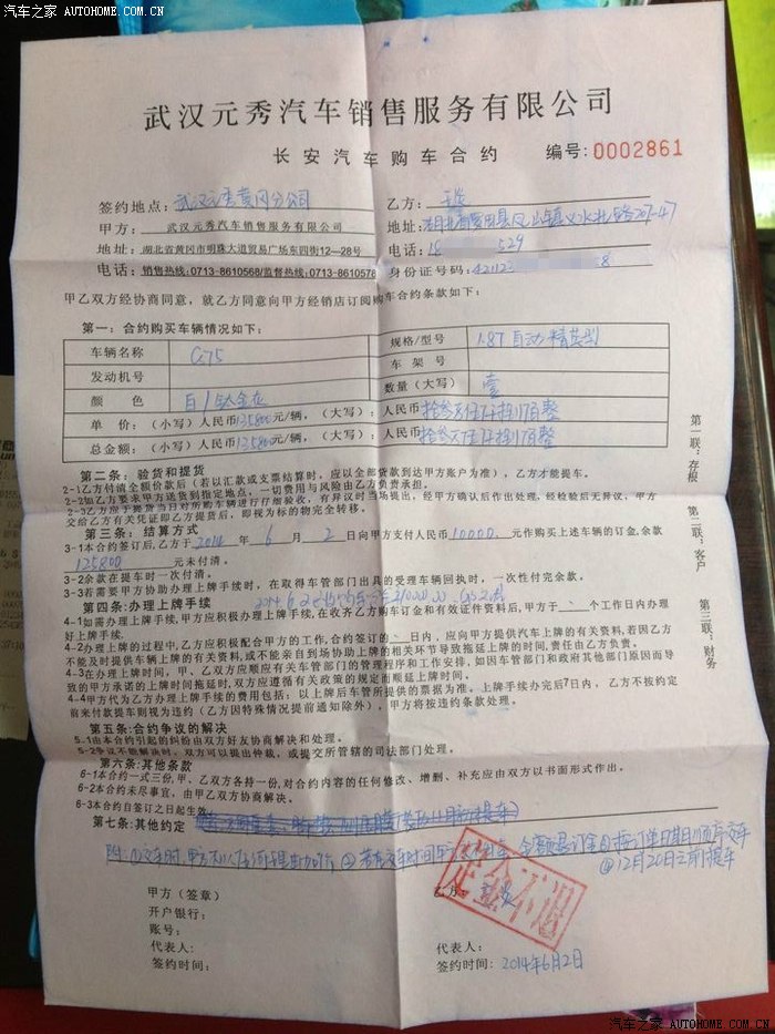 然后开始等待,4S说上牌这些事情大概需要3-5天时间,然后家人说最近只有9月13号是个好日子,而且上午都是吉时,于是就催促4S店尽快处理并安排到9月13号上午提车,
