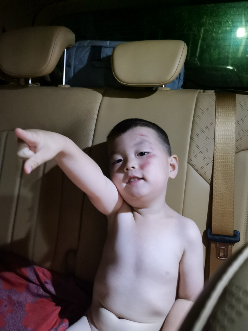第二天游览八仙过海景区时没能看到海市蜃楼虽有遗憾,但女儿的表现弥补了这份失落。景区的魔术表演中,她主动举手成为嘉宾,在台上落落大方地配合魔术师完成动作,得到小礼物,下来后还得意地说:“爸爸,我一点都不紧张!”傍晚回到露营地,意外发生了。儿子不小心摔倒了,脸磕在地上,顿时青了一块,哭的好伤心,也就一会儿就不哭了,很坚强。
