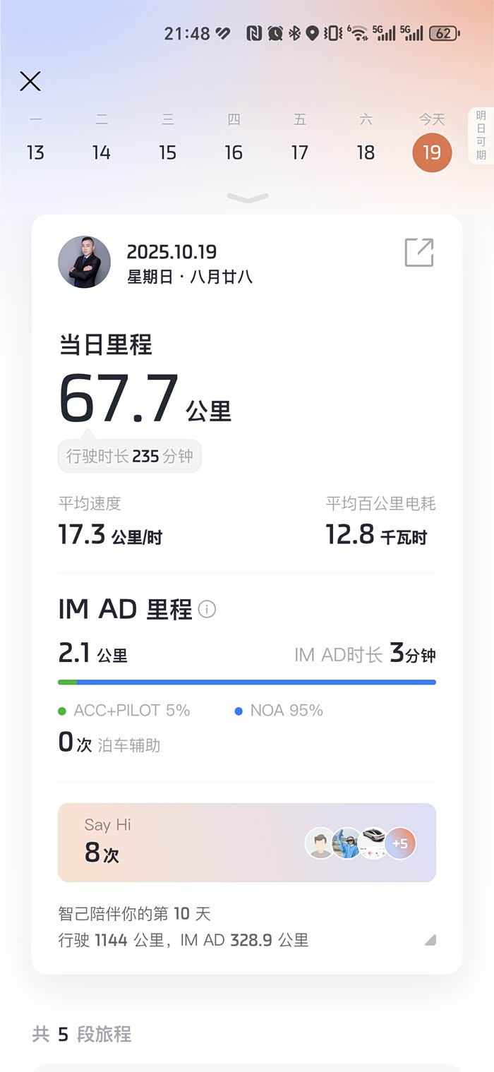 4.智己的增程器在能耗方面表现超出预期,混动模式下开出一两升的油耗很常见,平时主用电池,所以跑到现在我提车时加的100块油都没怎么动