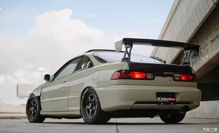 车头部分增加了前唇,提升扰流效果,车后碳纤维尾箱盖加上一组尾翼,就是外观的大部分改装了。车身并没有降到非常低,但车轮与叶子板之间已经没有空隙了,五幅式铝合金轮毂加上胎壁较厚的轮胎,整体的战斗格非常浓郁,也许这是DC2天生的姿态而决定的。