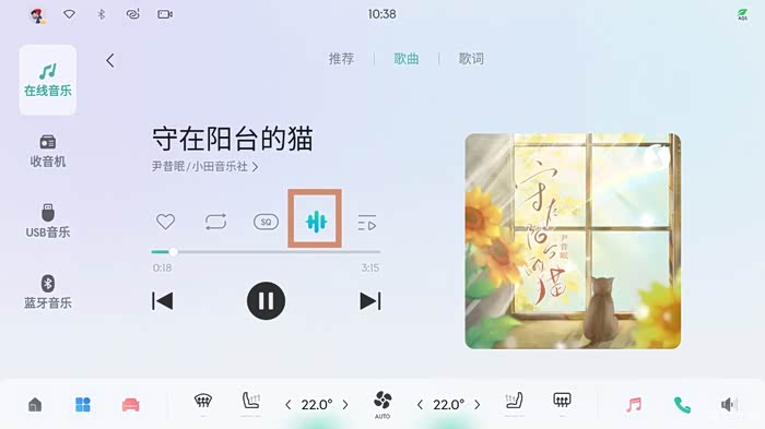 虽然我感觉之前扬声器就蛮不错的了,我对这方面要求不高。这次提升,主要来自于加入了一些EQ音效。我们打开QQ音乐,可以发现中间有一个音效设置按钮。