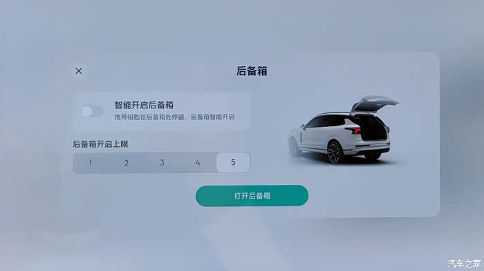 然后是大家诟病的后备箱误触发功能,领克09EMP的感应后备箱非常鸡肋,如果带着钥匙无意从车屁股走过,一不小心就会开启后备箱,运气不好可能会撞到障碍物。现在可以下滑呼出快捷设置栏,直接把这个功能关闭了。