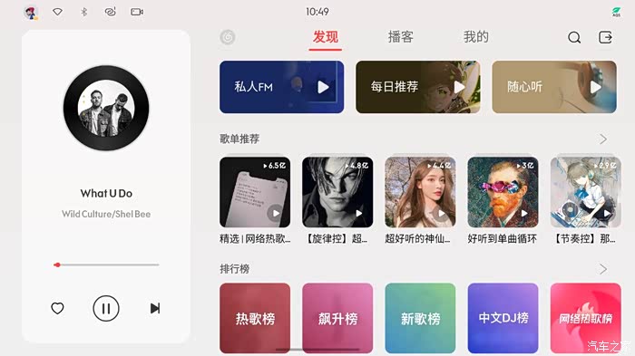 从桌面往右侧划动,加入了目前智能手机流行的负一屏功能。这个界面被戏称为“招商地块”,一般嘛都是厂商吸金用的。不过也有好处,领克自家的活动会优先推荐,比如最近有免费送三个月网易云音乐车机会员的活动,大家可以参加下。