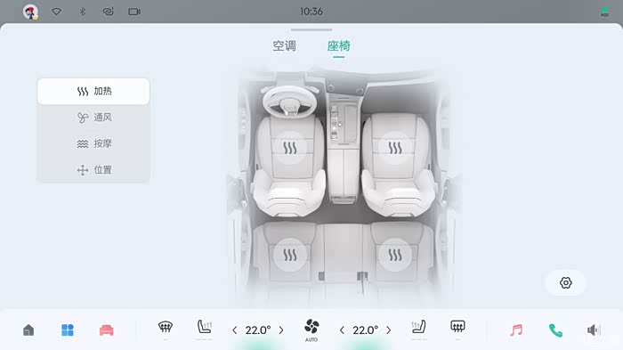 空调设置面板的界面改变非常大,除了识别度提高外,还加入了电车新势力比较有特色的那套空调出风动画效果。