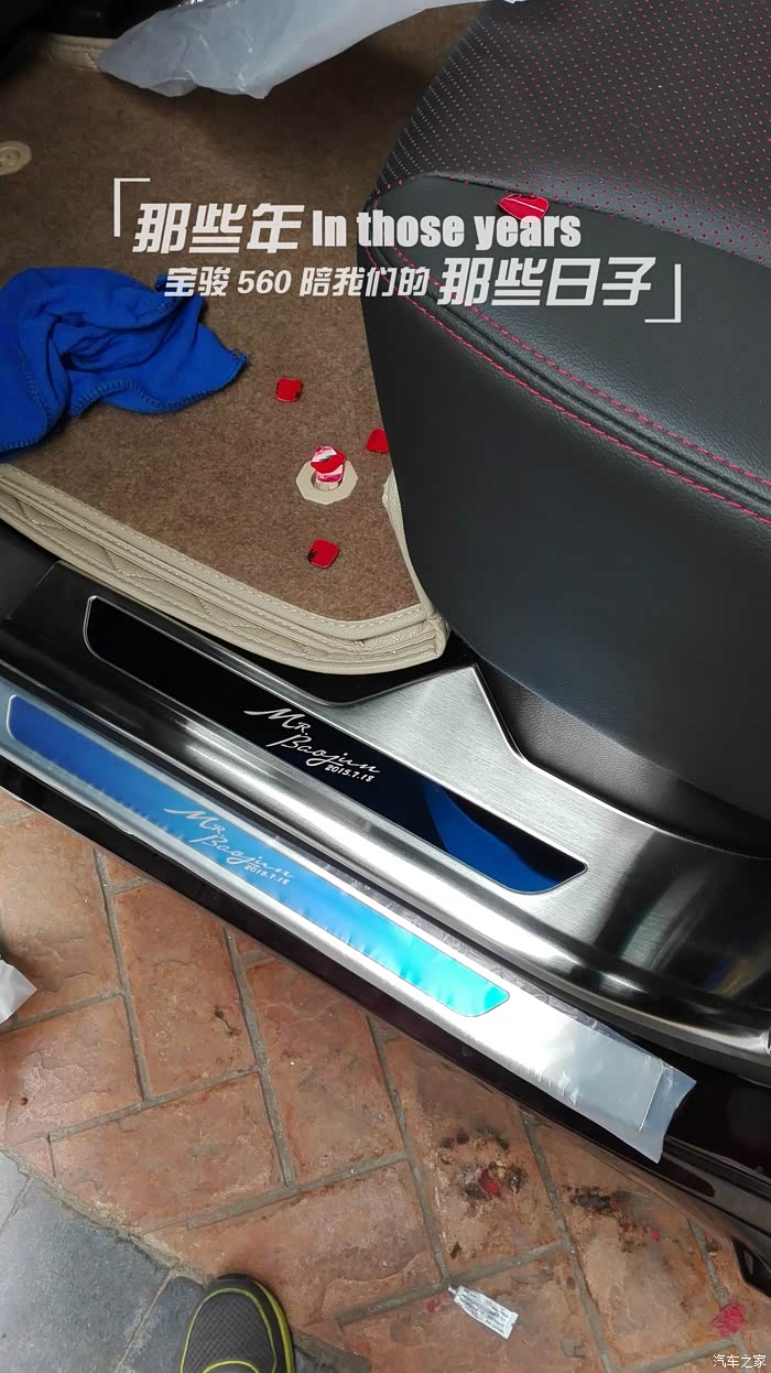 为宝骏560增添了不少配件 贴了膜、晴雨挡和车边贴条 脚踏板、大门碗感觉漂亮许多