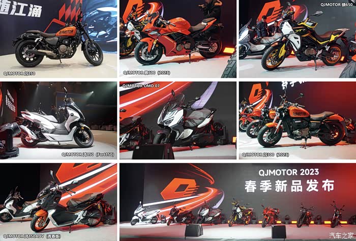 正月十五刚过,QJMOTOR就紧锣密鼓地在自己的温岭主场召开了2023春季新品发布会。会上共发布了赛、闪、骁、鸿燃油车系列以及OMO电摩的共7款新品车型。