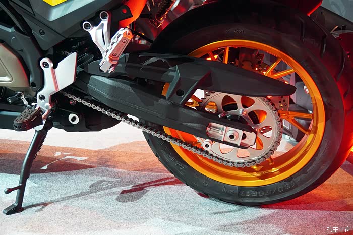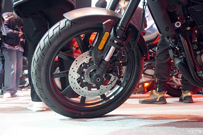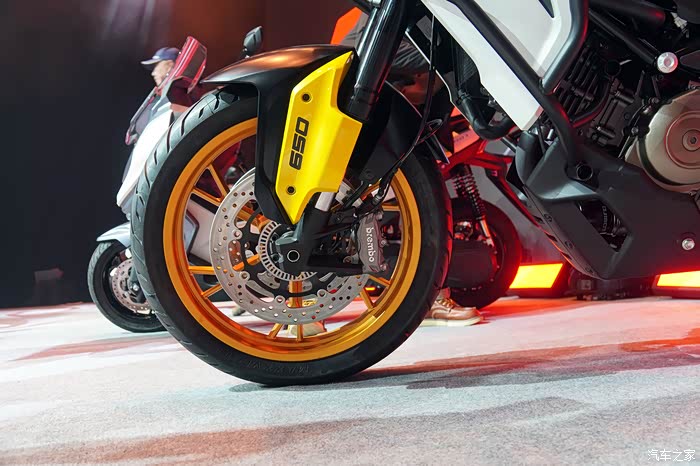 展车的轮组采用了一套铝合金压铸轮毂,轮胎选用了一对规格为前110/80 R19、后150/70R17的玛吉斯MAXX VENTURE,而官方资料显示骁650有搭配真空辐条轮毂的版本,相信会那个版本会选择一对更有“野味儿”的轮胎。