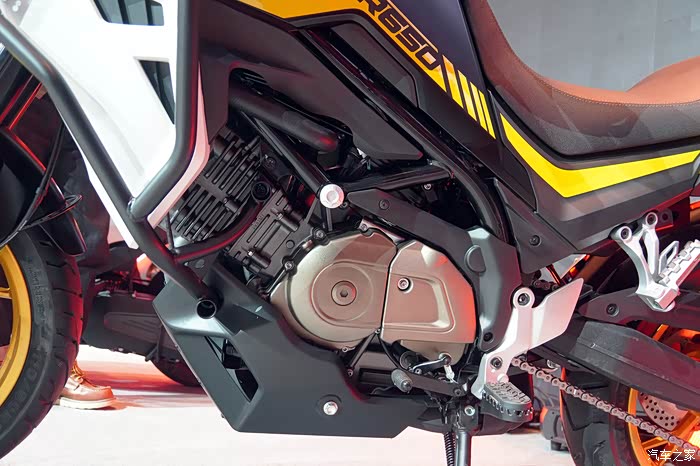 骁650最亮眼的地方并不在于外表,而是其搭载的650cc排量90度夹角V型双缸水冷发动机,最大功率56.78kW(76.14hp)、峰值扭矩65N.m的动力水平远超目前同排量的国产品牌并列双缸发动机。