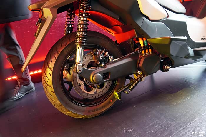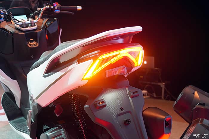 从外形上我们能看出这款电动踏板是脱胎于QJMOTOR前期发布的鸿350平台,从车头到车身都保持了相当高的一致性。不过从侧面看过去,自后摇臂开始,电动车的特征就开始明显了起来。配置方面当然也是继承了鸿350的高标准,电动风挡、手把加热等等鸿350有的功能它一样也没落下。