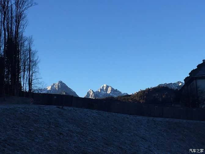 早上起来,发现昨晚有一瓶水放在车内没有拿回房间,一打开车门,就发现已经冻成冰了。。。整个车上也都覆盖满了霜。于是发动车启动除霜了一会儿,等霜都消除了才离开这个德奥边境小城。