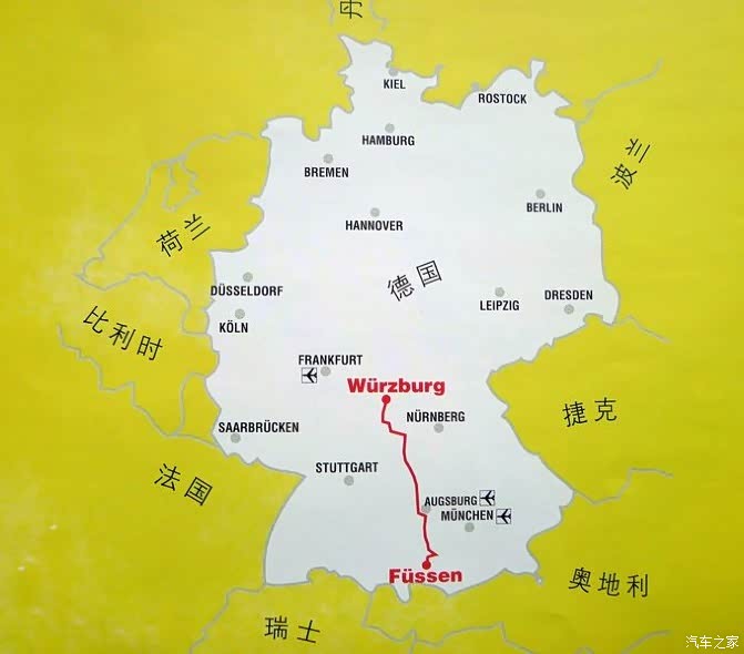 浪漫之路从维尔茨堡开始,主要的城市经过罗腾堡,奥古斯堡和雄高,以菲森(也就是新天鹅堡所在的地方)为结束,一般大家最终都在慕尼黑结束。夏日旺季的时候,浪漫之路是有一日班车的,整段路其实不长,我们边玩边开,浪漫之路本身也就是开了两天的时间。