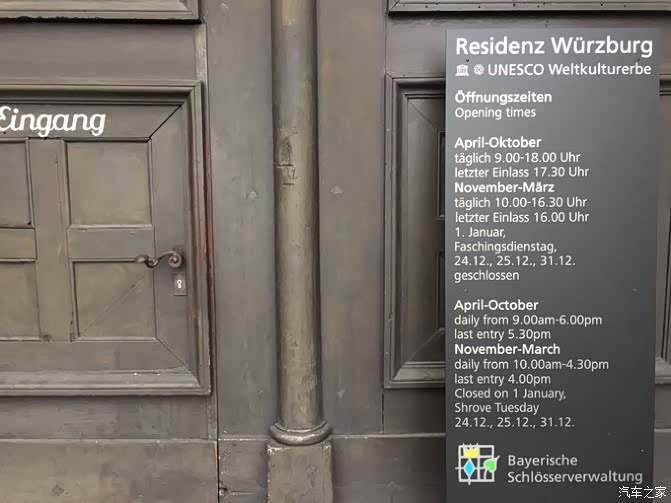 今天就正式开始浪漫之路的。由于昨晚住的是维尔茨堡的郊区,一早先开车去了维尔茨堡皇宫,停车费好像是4欧左右。空地很大,皇宫在修,门票记不太清了,大概是7欧左右。这个皇宫属于拜仁城堡联盟的,可以买城堡联票进入。