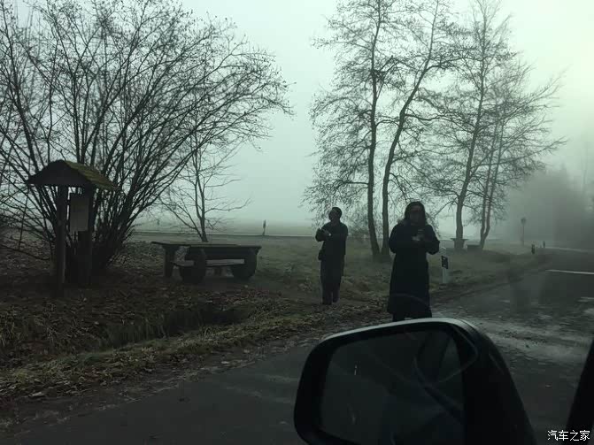 一开始也是非常浓烈的雾,后来雾渐渐散去,就看到高速公路两边都是雾松,以前只在新闻上看到祖国的东北有这种景观,没有想到德国这路上竟然到处都是,这倒是意外之喜。