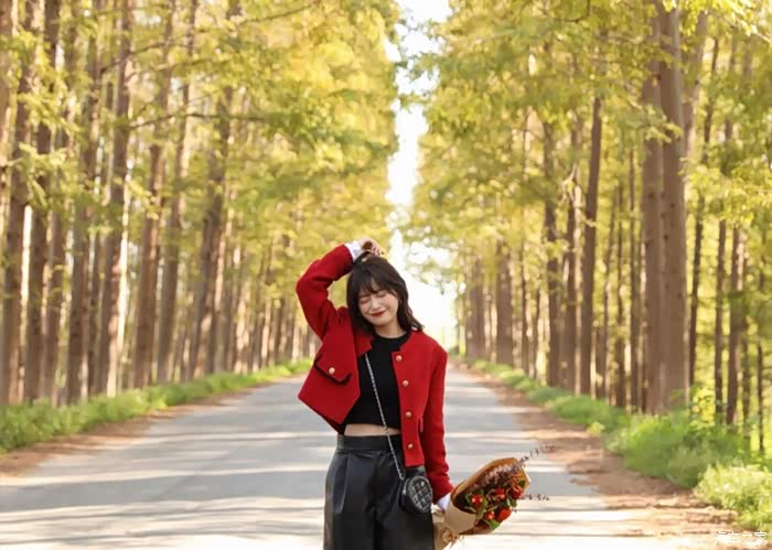 光影从林间的缝隙穿过,撒到车身的一侧,以及菇凉的侧脸之上~