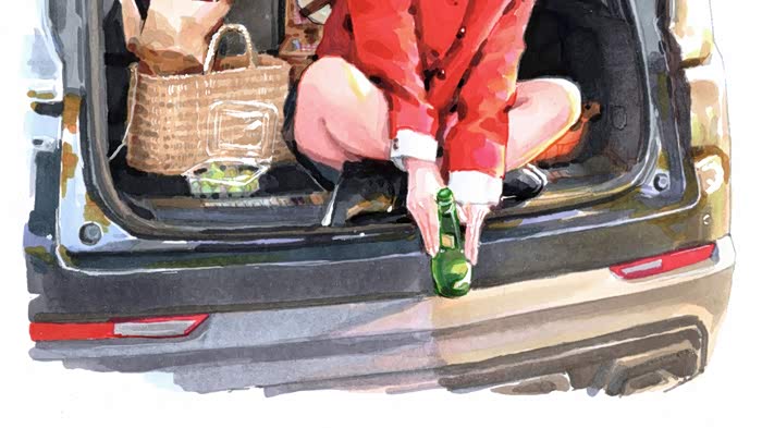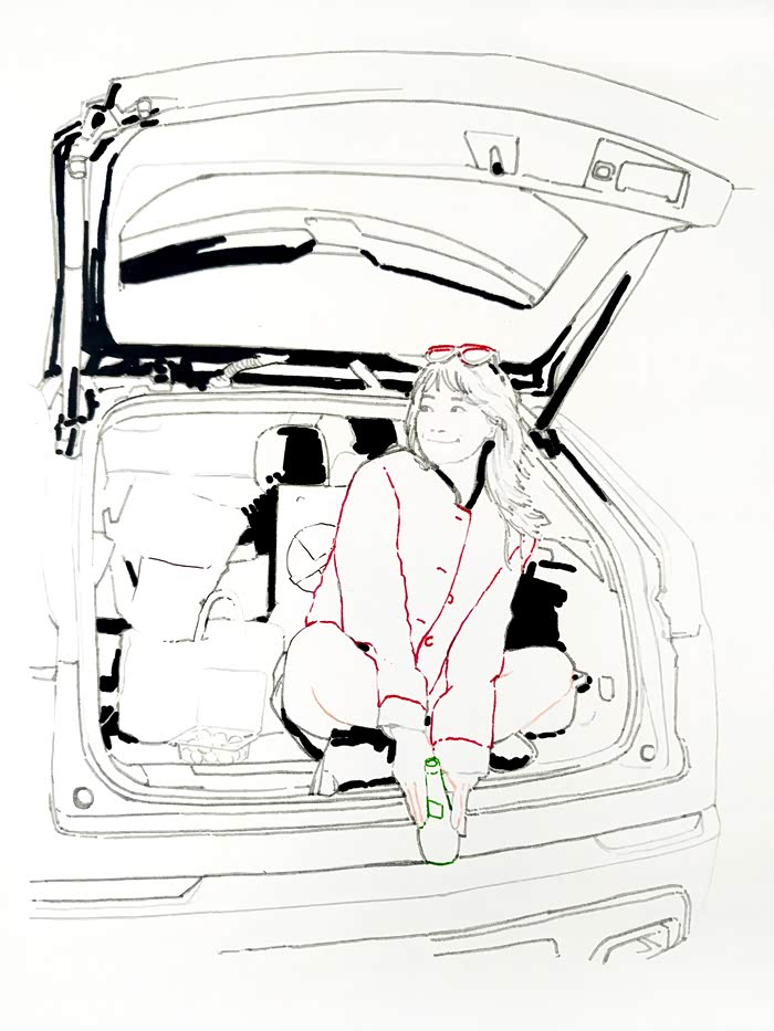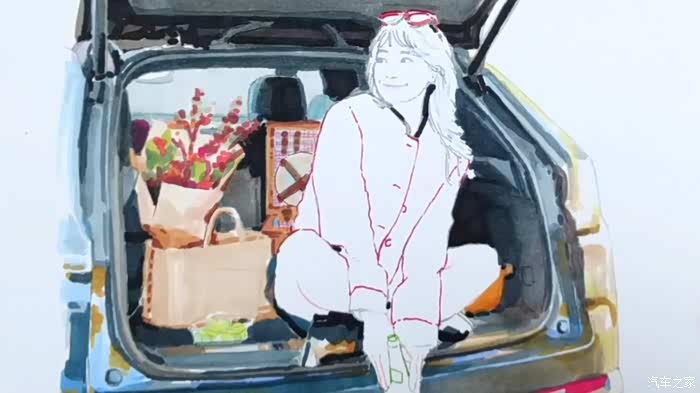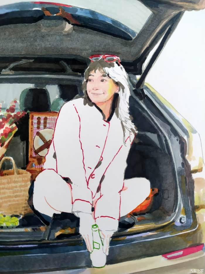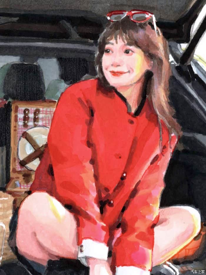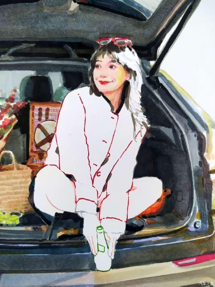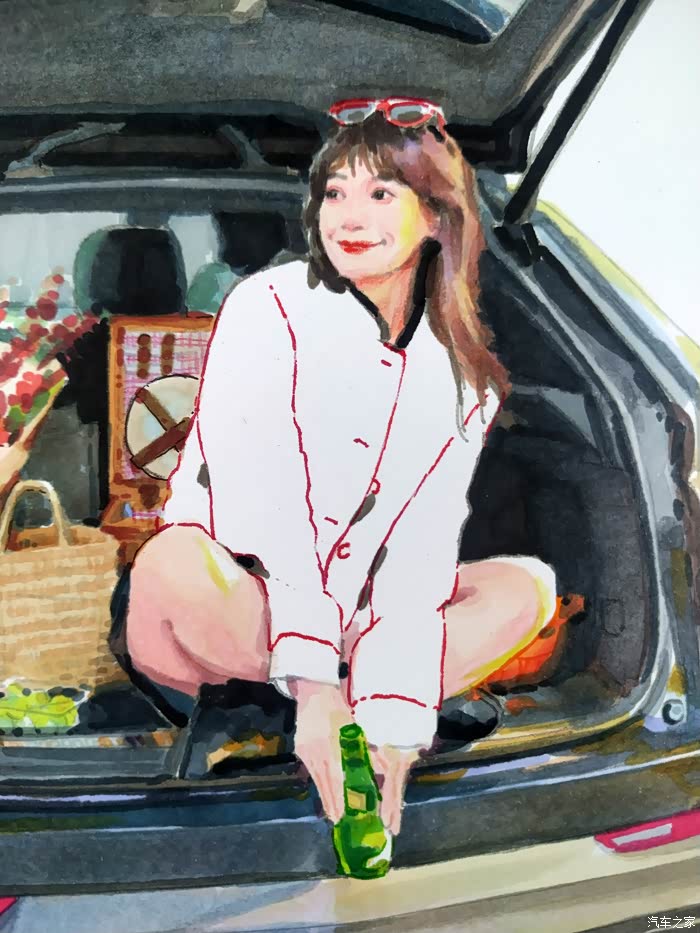 车的部分,画的差不多了。整体上色比较轻松,颜色惬意。之后再完善一下,花束和篮子等的细节。