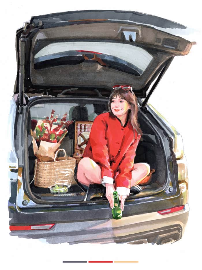 美好总是短暂的,不小心就会与它擦肩而过,今年的情人节不想再错过。特用3个主色调(灰色、红色、浅褐色)手绘爱在后备箱~