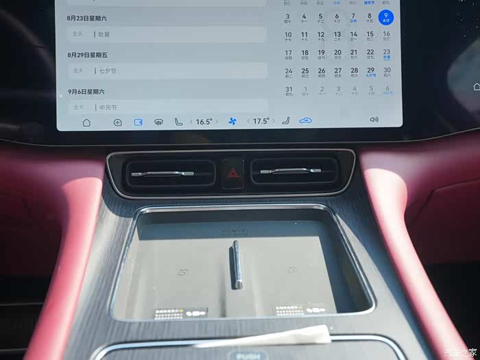无线充电板的位置也很顺手,手机放上去就能充,有时候着急出门,手机没电,随手一放,就能补电,到目的地电也充得差不多了,省了不少麻烦。