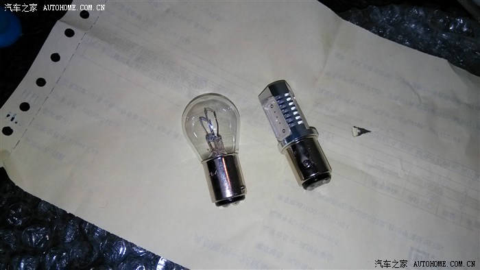 新到的刹车灯: 网购的电阻也没有用上,可以直接使用,手感做工很不错的说。与原车的灯泡对比图。上面图示的方法可以不使用。