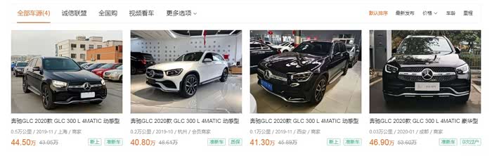 接着把2020款GLC 300L动感型的所有二手车都罗列出来,就这么四辆。