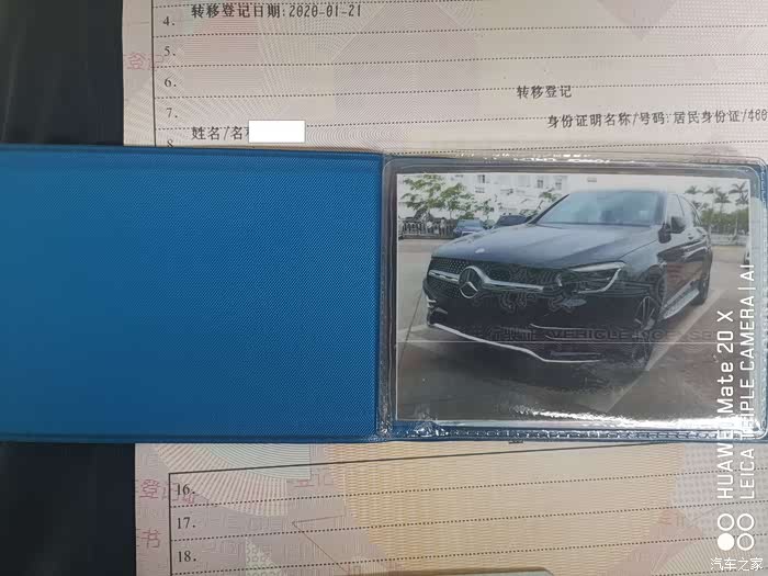 海南从19年就开始摇号上牌了,不过我有两辆旧车都有车牌,可以直接更新上牌,既把旧车卖掉,保留下车牌,该车牌在一年内有效,不用重新参加摇号。因此我就先把我的CLA过户给我堂弟,这个车就卖给他了,然后找了中介帮我把该车过户提档并开出临时牌来,在4月10号左右完成,整个过程花费1340元,包括加急归档。然后我拿着我的更新指标证明文件,准备把这个保留车牌上到这台新GLC上来。