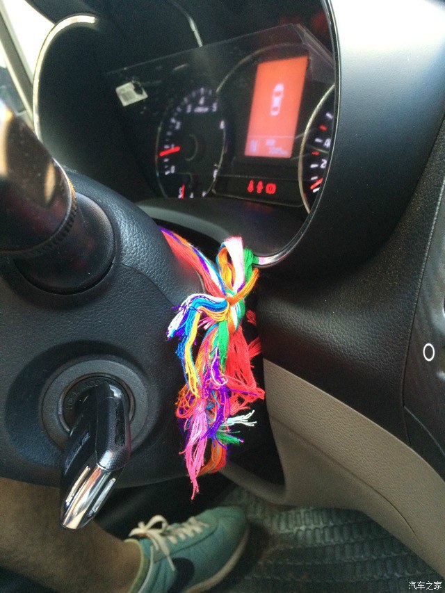 这是去寺庙栓线,一般新车都有个拴线仪式。(先要烧香点蜡烛,然后和尚念经,用水洒在头上,然后会拉一根很长的白线拴住车,然后念经,大概年3,5分钟了就好了,最后和尚会来拴上这些彩线,拴线仪式就完成了。)