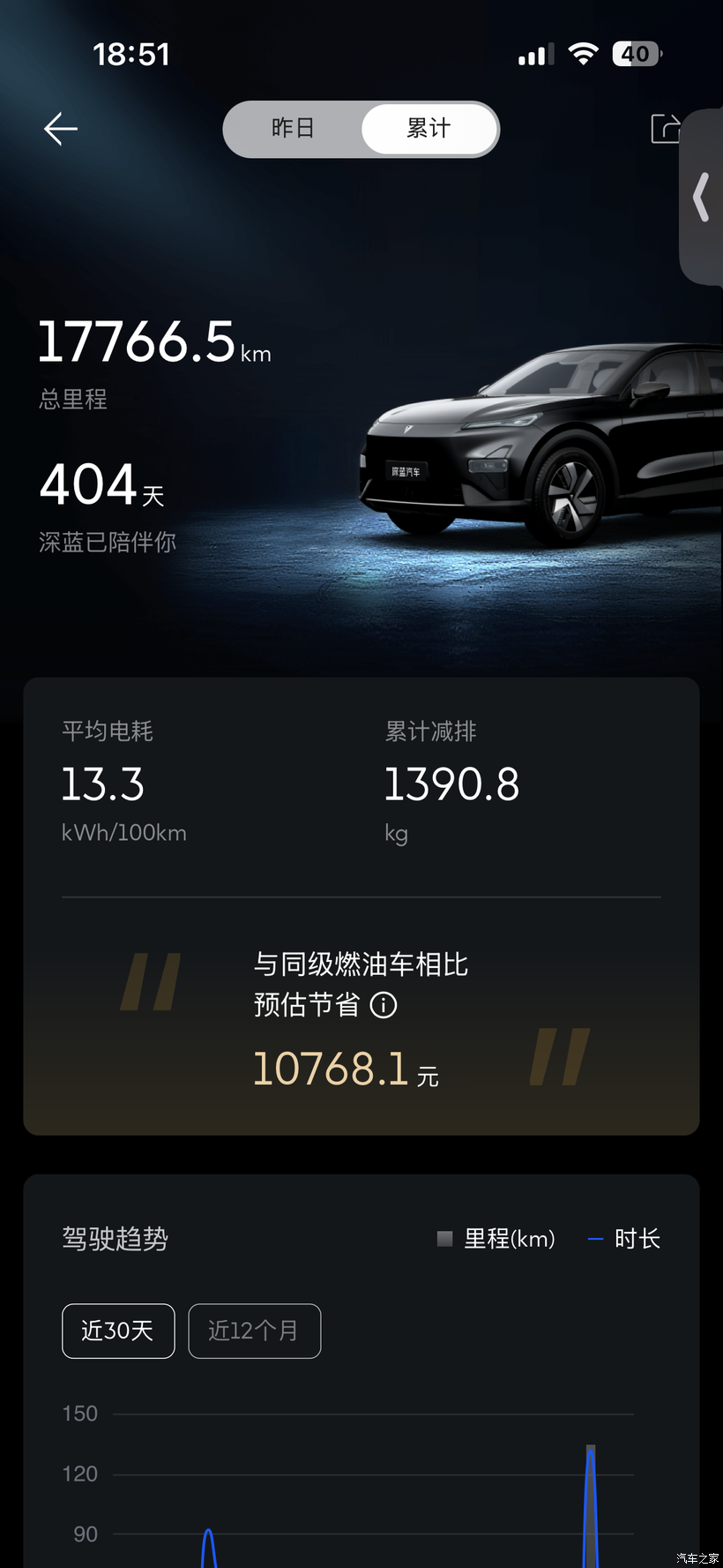 转眼深蓝S05已经陪我跑完了404天,里程表悄悄停在了17700多公里。翻看这一年的出行记录,它就像一本可靠的陪伴日记,没让我为续航操过心。