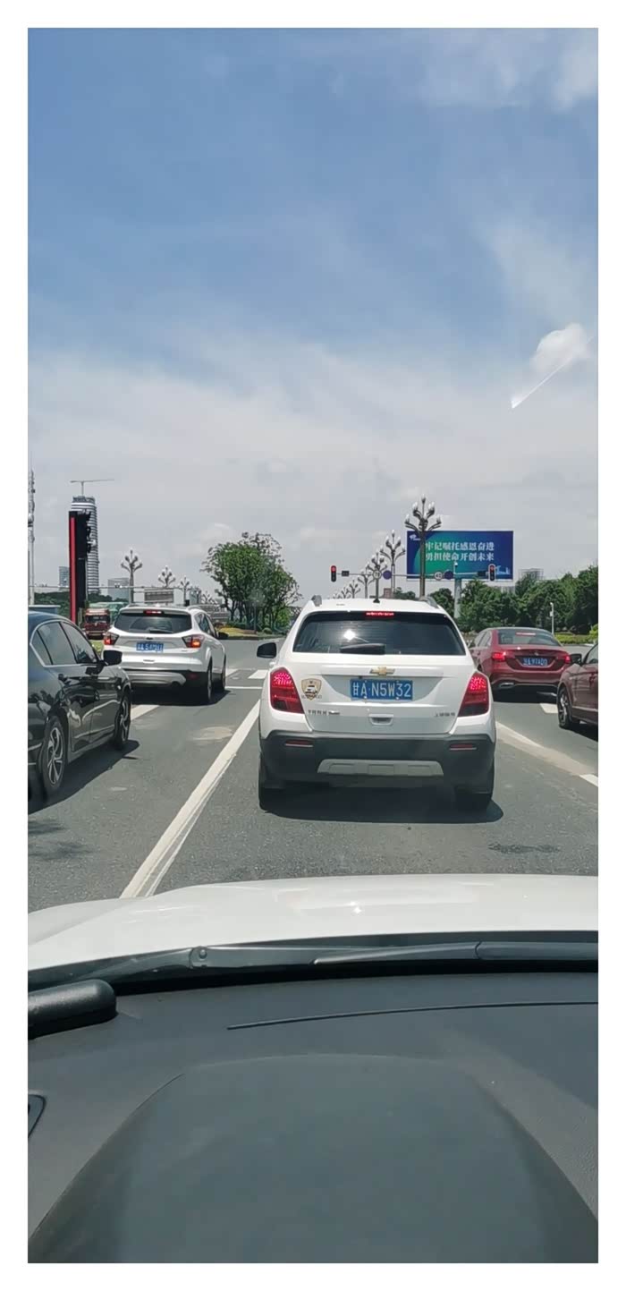 从武汉出发,武汉天气微微有点热,车内还需要开着空调。这是准备上高架桥的时候等红绿灯拍的一样,纪念我出发的画面,哈哈!