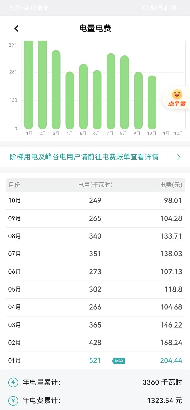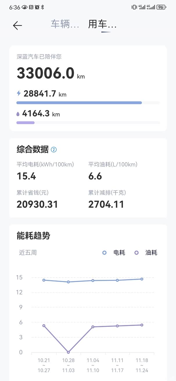 我现场的车是22年的深蓝SL03,,配置属于标配,当时没有选装实体钥匙,抬头显和索尼音响,以及轮胎轮辋。目前26个月已经行驶了33000公里,目前用油是4164多公里,用电是28841多公里,月用电行驶里程是2400公里 ,大多数都是在城市内驾驶,以用电为主,电网上看数据今年用电量大概3360度电,月平均用电是280度电,费用是109元, 使用成本上来讲,非常合适的。