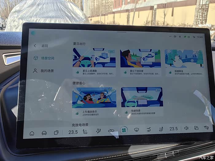 另外可以通过APP进行远程空调控制,还有智能出行设置,保证了上车前空调就已经完成温度调节,还有座椅加热通风,这提供用车的舒适性,车上再也没有各种坐垫套了,而且最新还可以进行场景积木设置,我设置了上车后的一系列操作,空调风向,座椅加热,喜欢的媒体播放,欢迎语等,上车自动完成,非常方便。
