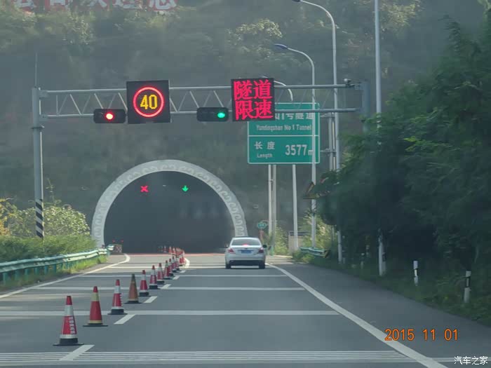但第一个隧道就给了点颜色,金堂1号隧道限速40码!3.6公里长的隧道,40码跑得人心头发慌。一路之上,隧道内限速有的60,有的80,快到南江的时候,又有两个限40。