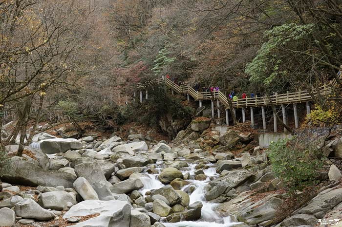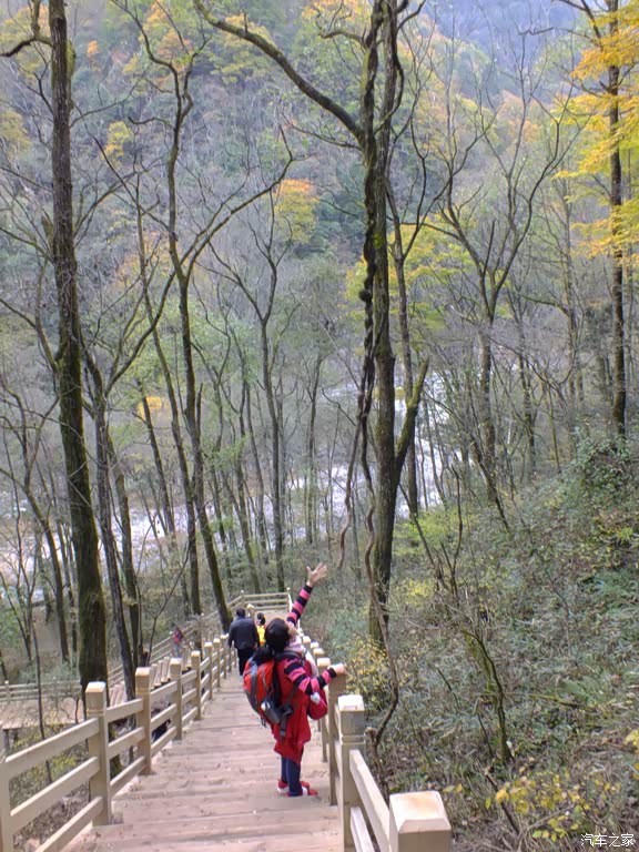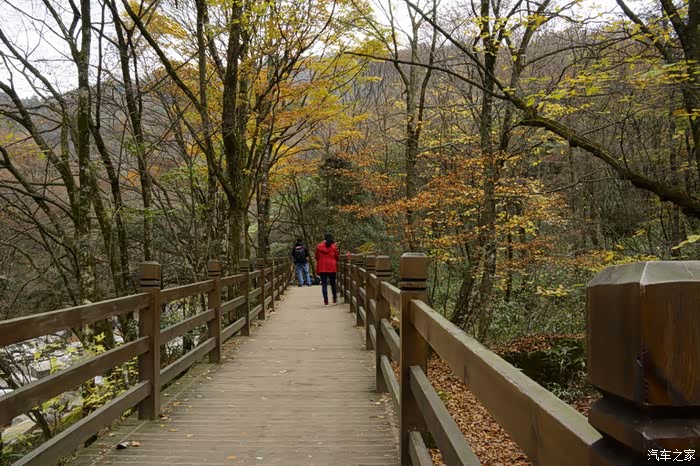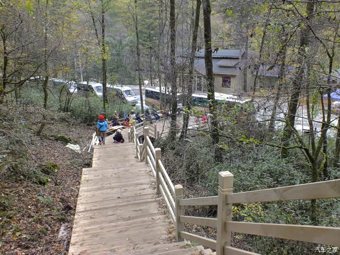 沿天然画廊的游山蹬道从上往下走,感到光雾山的行程设计真的很贴心,下山省力啊。下到公路上,已经有观光车在下面等着,继续到下一个景点黑熊沟。其实这条线最远是到香炉峰的,同车人都选择先远后近,先去香炉峰,回来再玩黑熊沟。我们以为黑熊沟更漂亮,就提前在黑熊沟下车了,想着玩了黑熊沟再去香炉峰吧,结果后来时间不够,就没去香炉峰了。