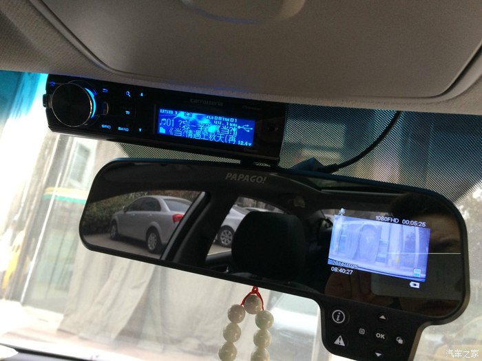 papago的带行车记录仪的后视镜,上面为先锋cd的面板,还挺配的,呵呵