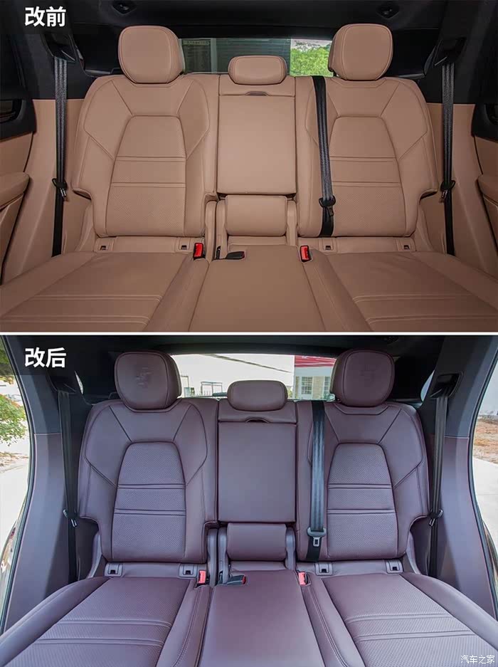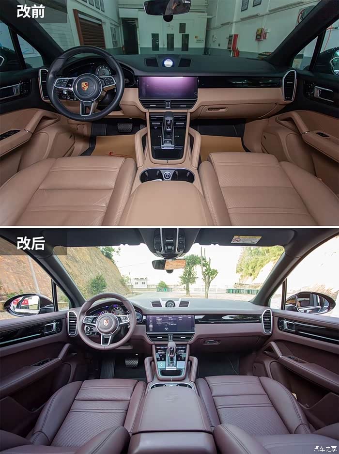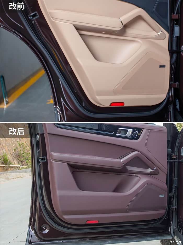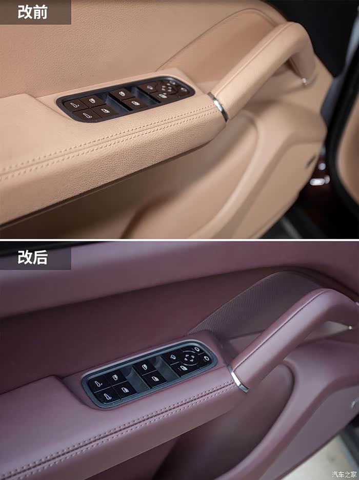 下面介绍一下这款玛莎拉红内饰比较特殊,卡宴车型看了好像没有选配!老婆也偏向于喜欢紫色!就打消了前面的纠结哈哈!下面分享一下改出来的效果给大家看看