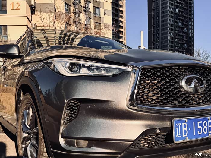 每次驾驶英菲尼迪QX50抵达目的地后,下车回头锁车,内心总会夸赞一下,造型是帅奥。尤其是这个前大灯的设计,真的是“深得朕心”。用“犀利”两个字来形容这个前大灯,再合适不过了,简直是前脸造型的点睛之笔。辨识度非常高,视觉冲击力也很强,官网上宣传说这个叫星际矩阵式的前大灯。咱不懂它怎么起的名字,反正好看,帅就对了。当然,不仅仅是造型好看,里面的光源也是全LED的,亮度高能耗也低,非常的不错。