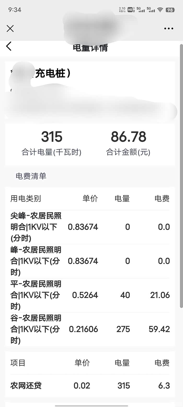 充电费用:重头戏来啦,截至目前行驶13609km,用了1864度电,基本上是在家用充电桩充的,在外面充电站就充了两三次算164度。家里的充电桩夜间充电每度电是0.24元,算上损耗0.3元一度吧,1700*0.3=510元,164*1.3=213.2,所以家充加上外面快充费用今年充电花费723.2元,外面充电电价确实高啊,占了快3分之一的费用,但确实比加油便宜。