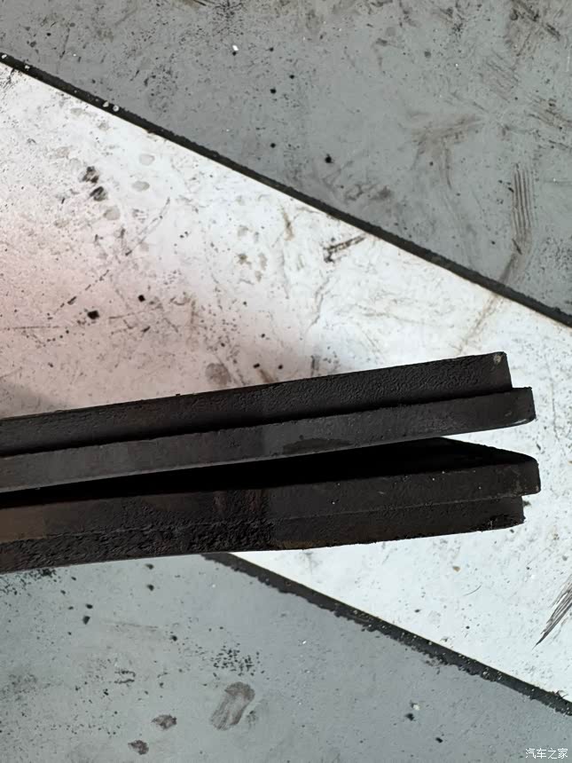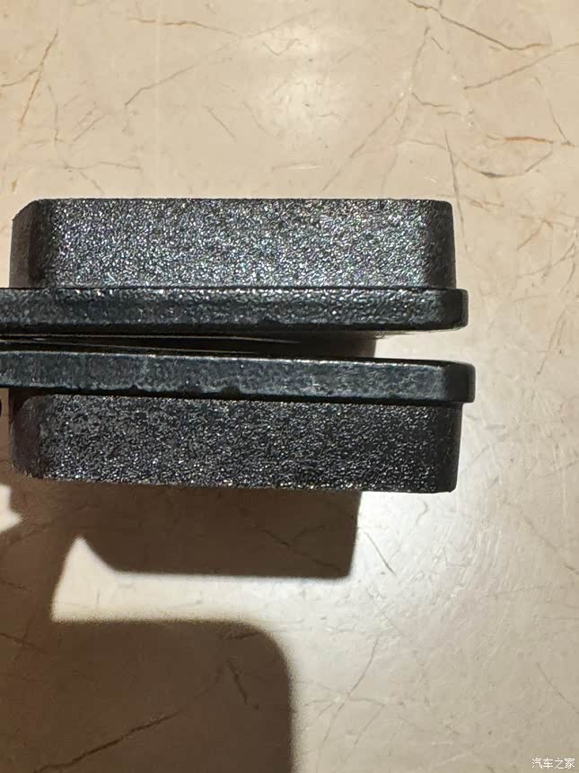 拆下后的旧刹车片厚度还剩下这么多,跑个一两千公里应该没什么问题。
