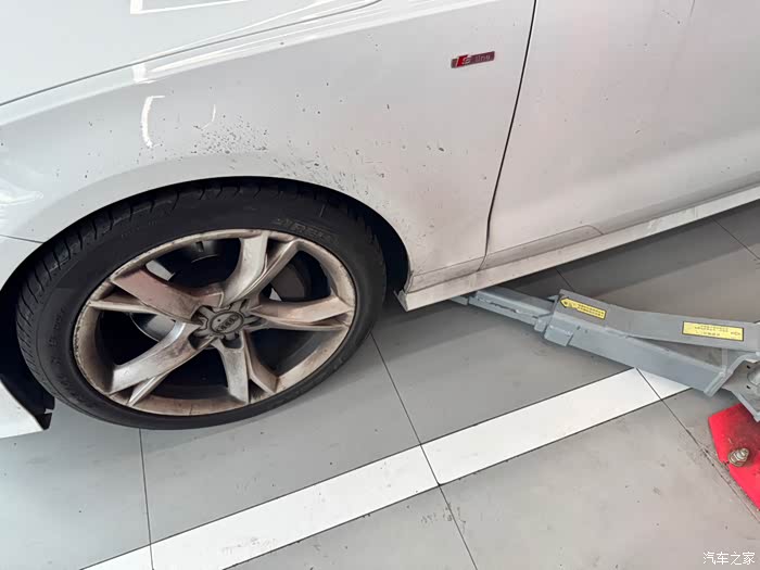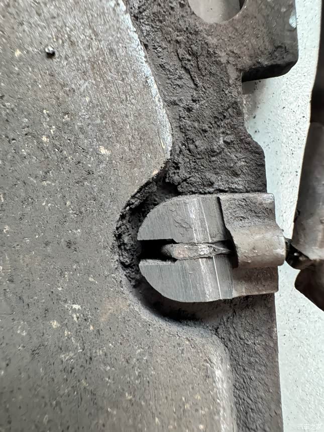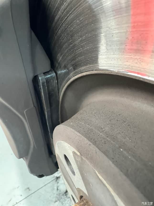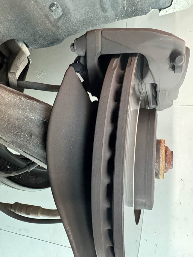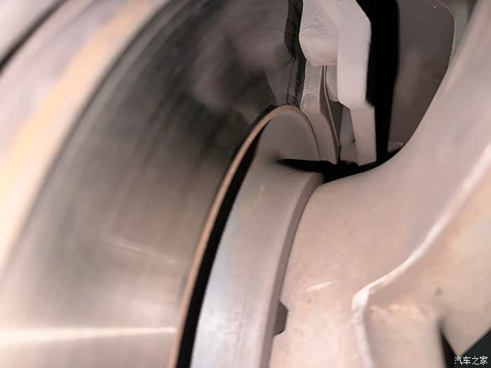 停好车后检查刹车片确实磨损了,目测还有5mm左右厚度。按说刹车片厚度3mm以上就是安全的,看来奥迪的报警是比较提前量的。