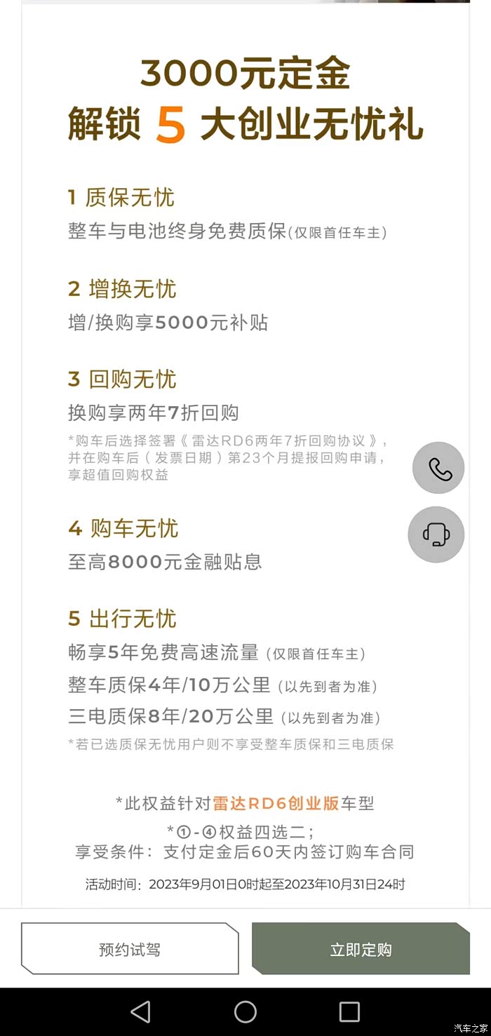 我是七月份购买的吉利雷达rd6,就置换补贴现在这个事情到现在都么有处理,我不知道几年以后的终身质保一旦出现问题,我不知道是需要一个月,半年,一年甚至更长时间,我们消费者玩不起,所以我没有信心,也没有信心推荐给别人,只希望想买的朋友慎重考虑考虑吧,毕竟都是自己的辛苦钱特别是买低配版本的,都是以挣钱为目的,官方工作人员介入后也是不了了之了,后悔担心中