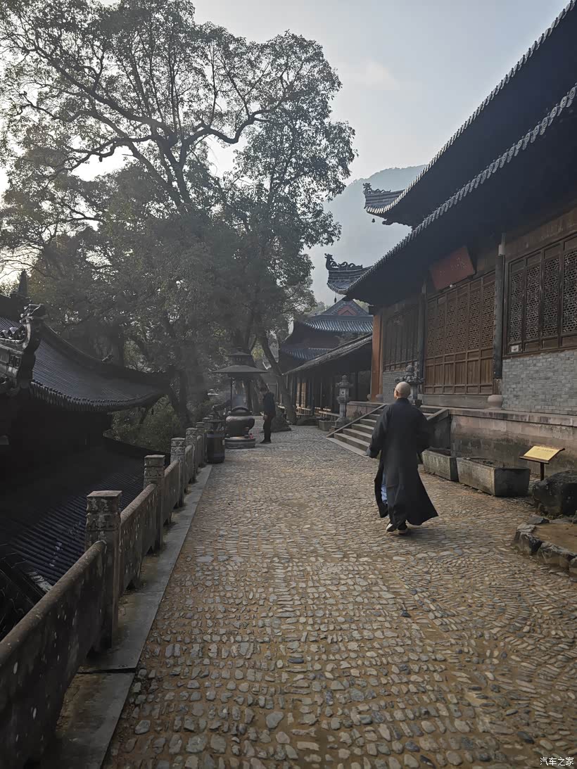 实用贴士:国清寺免费开放,7:00-16:00营业,作为天台宗祖庭,“三隋”胜景(隋寺、隋塔、隋梅)是核心看点,大雄宝殿右侧的千年隋梅春节正值盛花期,1400余年树龄的枝干缀满粉白梅花,与黄墙黛瓦、红灯笼相映成趣。台州春节多低温阴雨,山区路段易湿滑,XC40 B4车型搭载的2.0T轻混发动机+48V轻混系统,能输出197马力最大功率与300N·m峰值扭矩,配合8AT手自一体变速箱,换挡逻辑清晰流畅,爬坡时动力随叫随到且无顿挫感,即便满载家人与年货,也能稳稳攻克连续盘山陡坡。车机系统支持在线导航,提前下载离线地图,山区信号薄弱时也能精准指路,避免绕路。