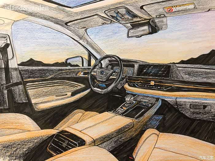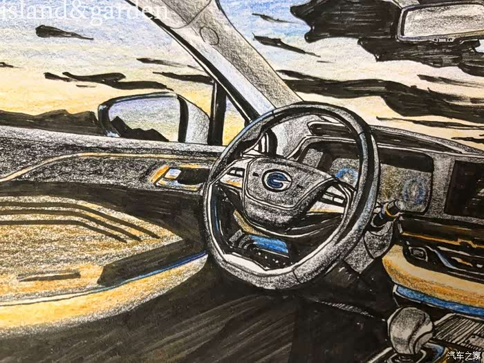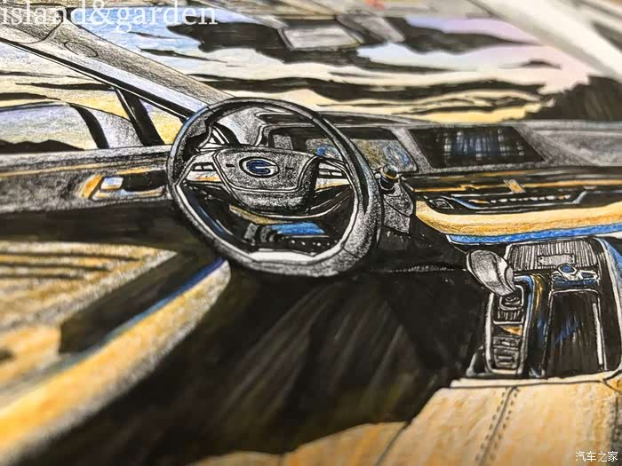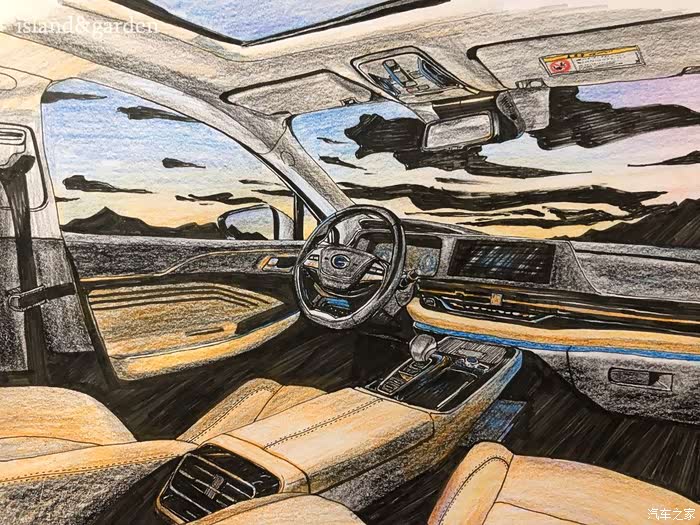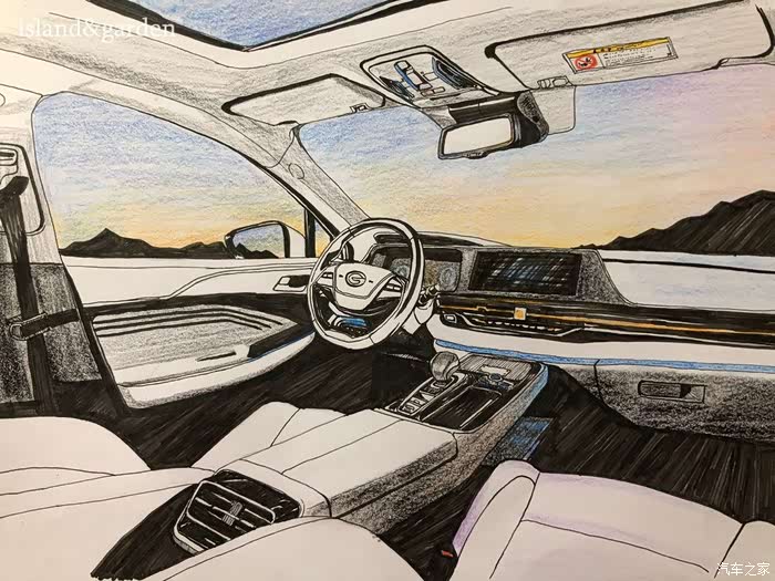 内饰的阴影部分比较多,加上丰富的功能按键,需要耐心和细心地描绘,这也体现出广汽新能源的匠心品质,只做最好的车。