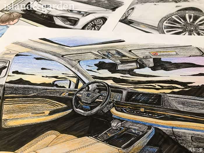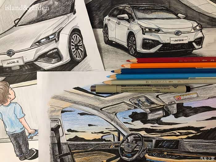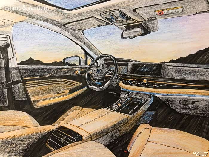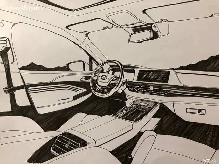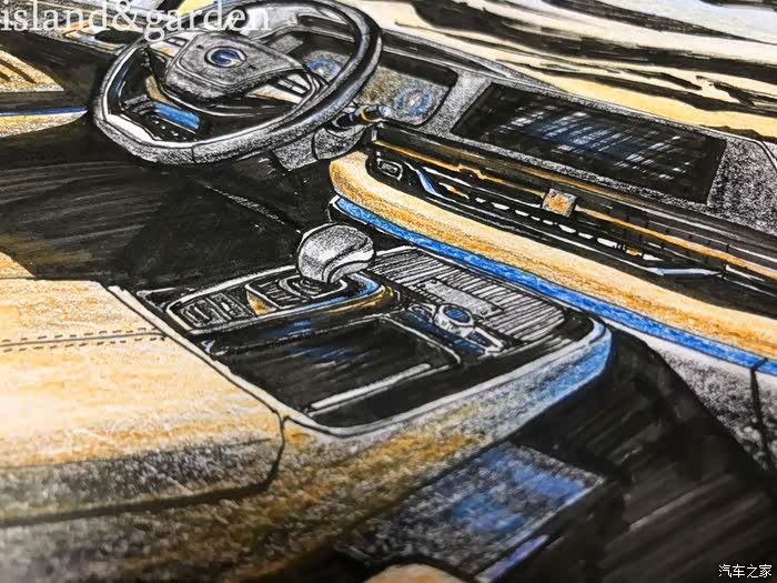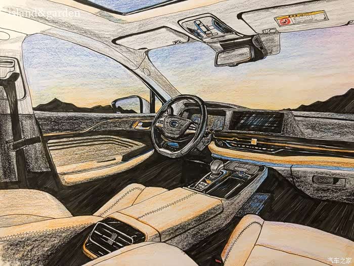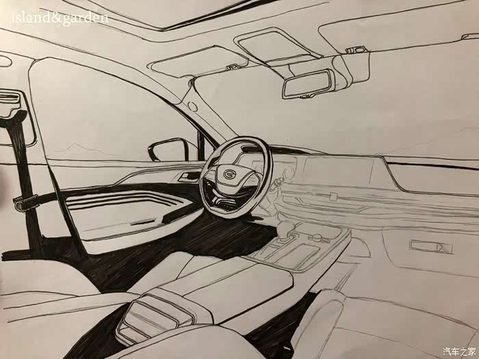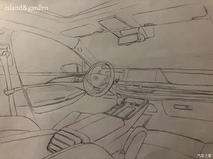 内饰的结构和使用材料了解后,被广汽新能源Aion S的豪华内饰和丰富的质感所迷恋,按耐下激动地心情之后,就开始描绘轮廓。