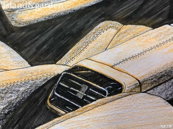 空调调节为触摸控制,位于中控屏下方,此设计是满满的科技感味道,要通过描绘体验出来,并不是件容易的事情,其中的高光、加深要用得恰到好处。于是在这一块,花了两个多钟头的时间,为的就是追求那匠心的极致。