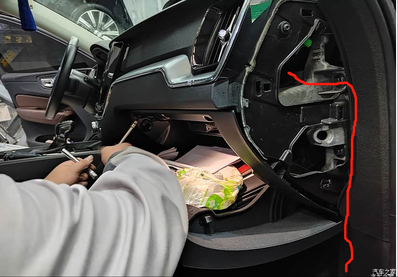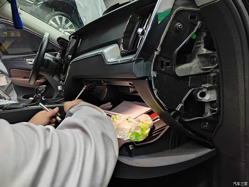 一周后,售后通知我到货了。我迫不及待请了假就往4S店跑。工单确认、仓库出货、开封检查、拆解安装、调试,整改过程看似简单,可也费了些周折。我仔细看了包装盒及中置颜色,是匈牙利制造、黄盆。第一次安装好调试时,中置没声音,检查后发现是线束问题,需要重新订货。无奈把刚装上的中置又拆下来,恢复车子原貌。过了三天,再次到店安装。师傅先取下原来的中置盖板、副驾手套箱,把线束和扩音器连接好,放进中置位置,再盖上宝华中置盖板,开始走线。线束从中控台下来穿过手套箱,再通过地板,另一端和副驾座椅下的功放相连,最后调试声音,前后大概40分钟就搞定了。