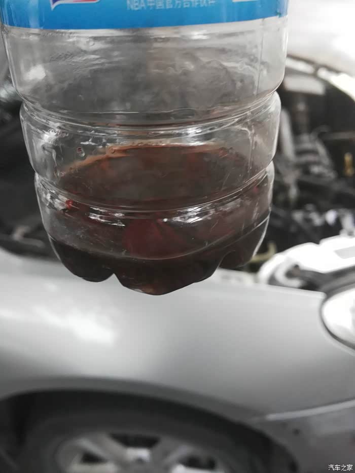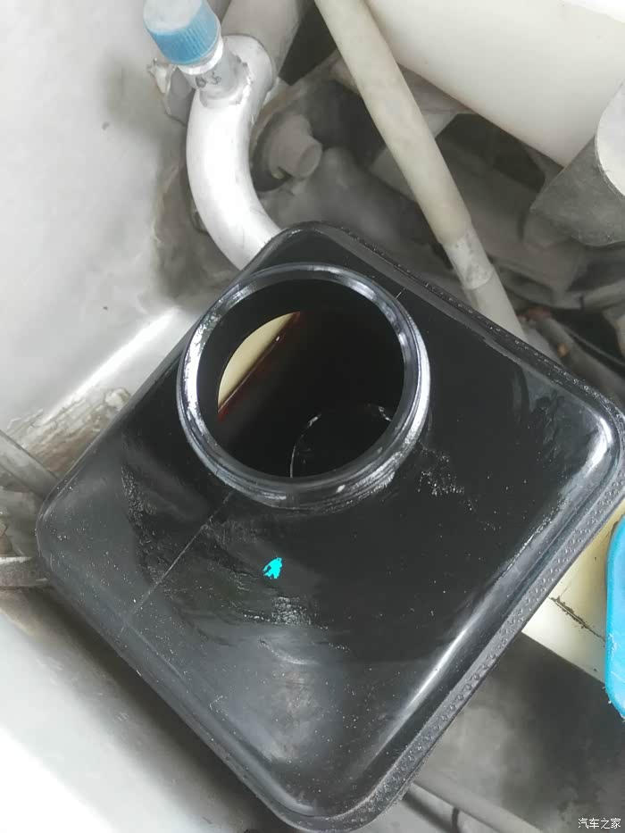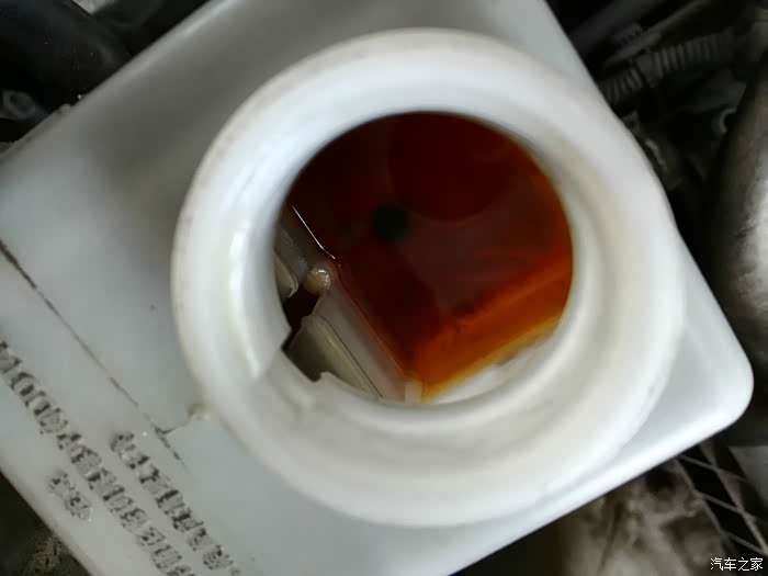 后来换的转向助力油,同样油壶里的油都变色了,内壁上一圈黑色。