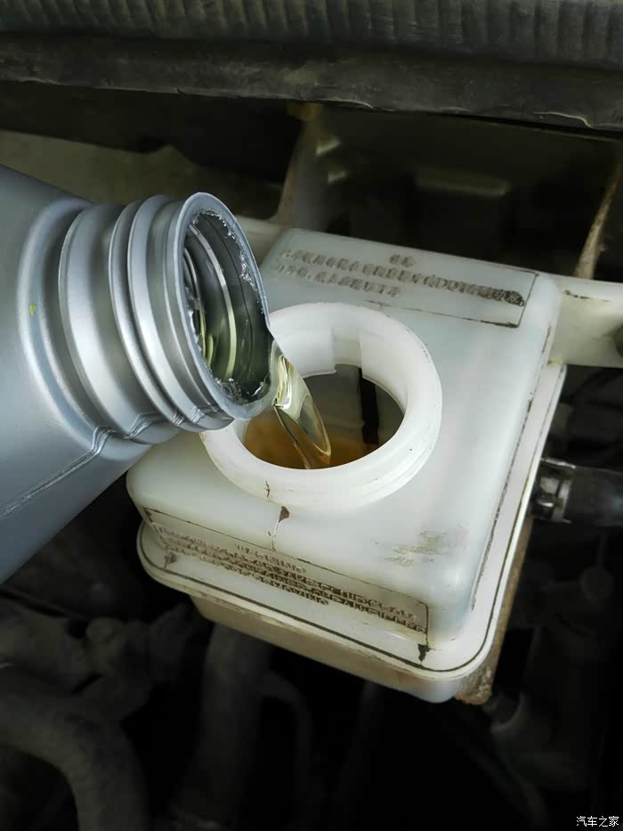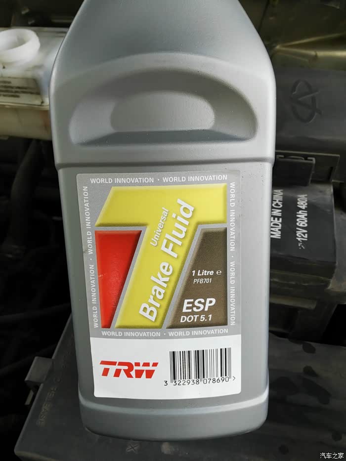 先换的刹车油,刹车油要是不好可是要命的呀,所以必须上最好的DOT5.1的。刹车油大家都知道,油壶里清理干净,填上新油之后每个轮子放废油就成了。