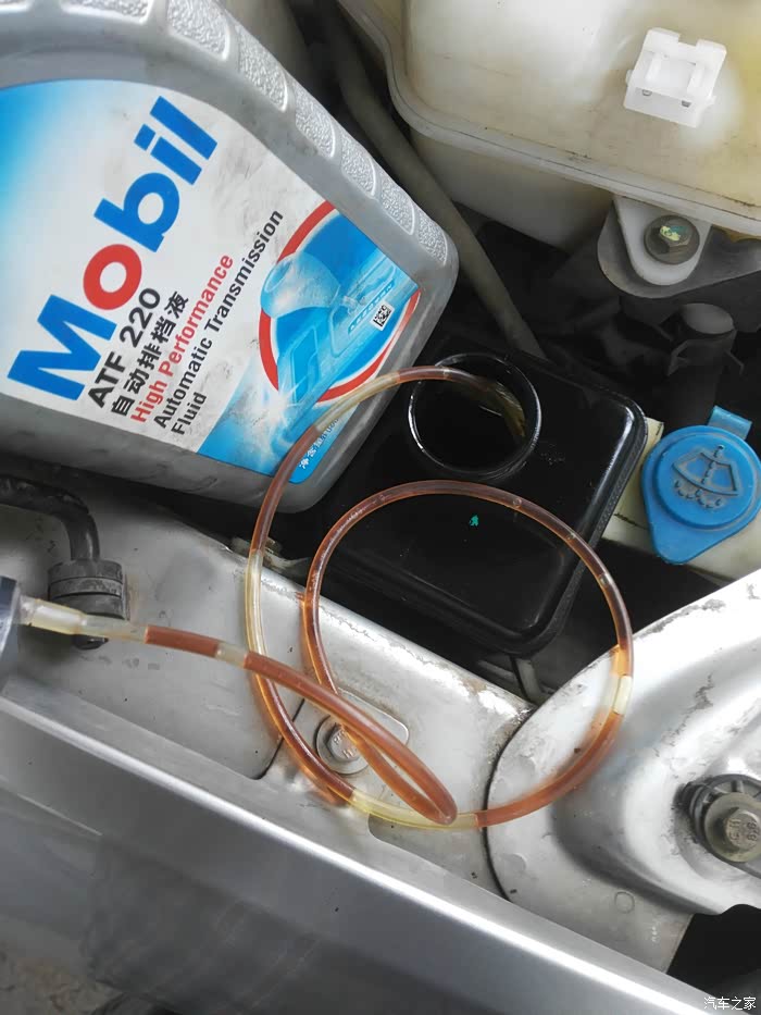 管路里的废油排净之后再加新油,然后继续打方向把新油抽到泵里,刚换完油因为助力泵里进气,方向盘会抖,多***方向,开一会就好了。因为自己弄得满手都是油,就只有这么几张照片了。