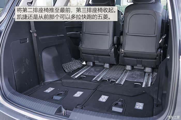 虽然凯捷是一台6座车,但我个人感觉它还是更适合一个三口之家。让第三排座椅收起,彻底腾出一个巨大空间安放行李;第二排座椅尽量舒展,给老婆和孩子更多的舒适体验。而作为驾驶者,能平稳行驶给家人更多安全保障便是最大的使命。
