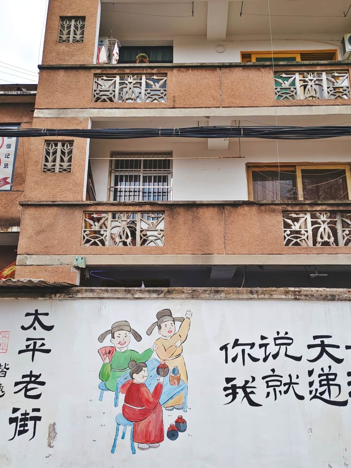 抵达新津区太平老街,按照导航先到太平老街智慧停车场,停好车再步行前往太平老街党群服务站,几步路就直达街区入口,方便又好找。走进老街的第一感觉,就是舒服——没有过度商业化的喧闹,没有千篇一律的网红打卡套路,整条街保留着原汁原味的历史痕迹,墙面带着岁月沉淀的质感,砖瓦间都是老成都的烟火气。